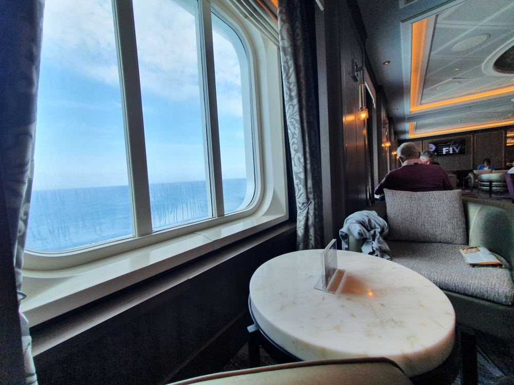 Room service breakfast and a lay in this morning. We are now in the Atlantic, heading north up coast of Portugal. The weather has changed and as it is now not suitable for sun bathing all the seats inside are full. We eventually found a seat in the "Take Five" Jazz club. It's quiet and not many people know that it is there.