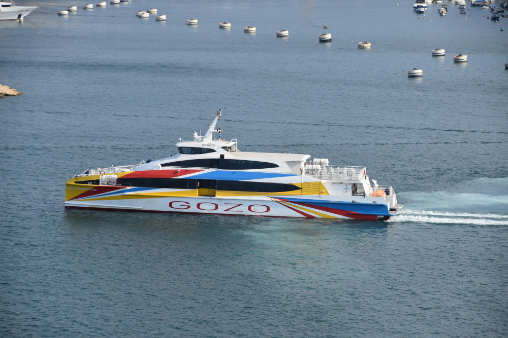 With ferry tickets booked we left the hotel and dropped down the stairs to the Gozo ferry terminal. Scanning our tickets allowed us in to the air-conditioned waiting area. Boarding the ferry for the 45 minute crossing we got a couple of seats by a window.