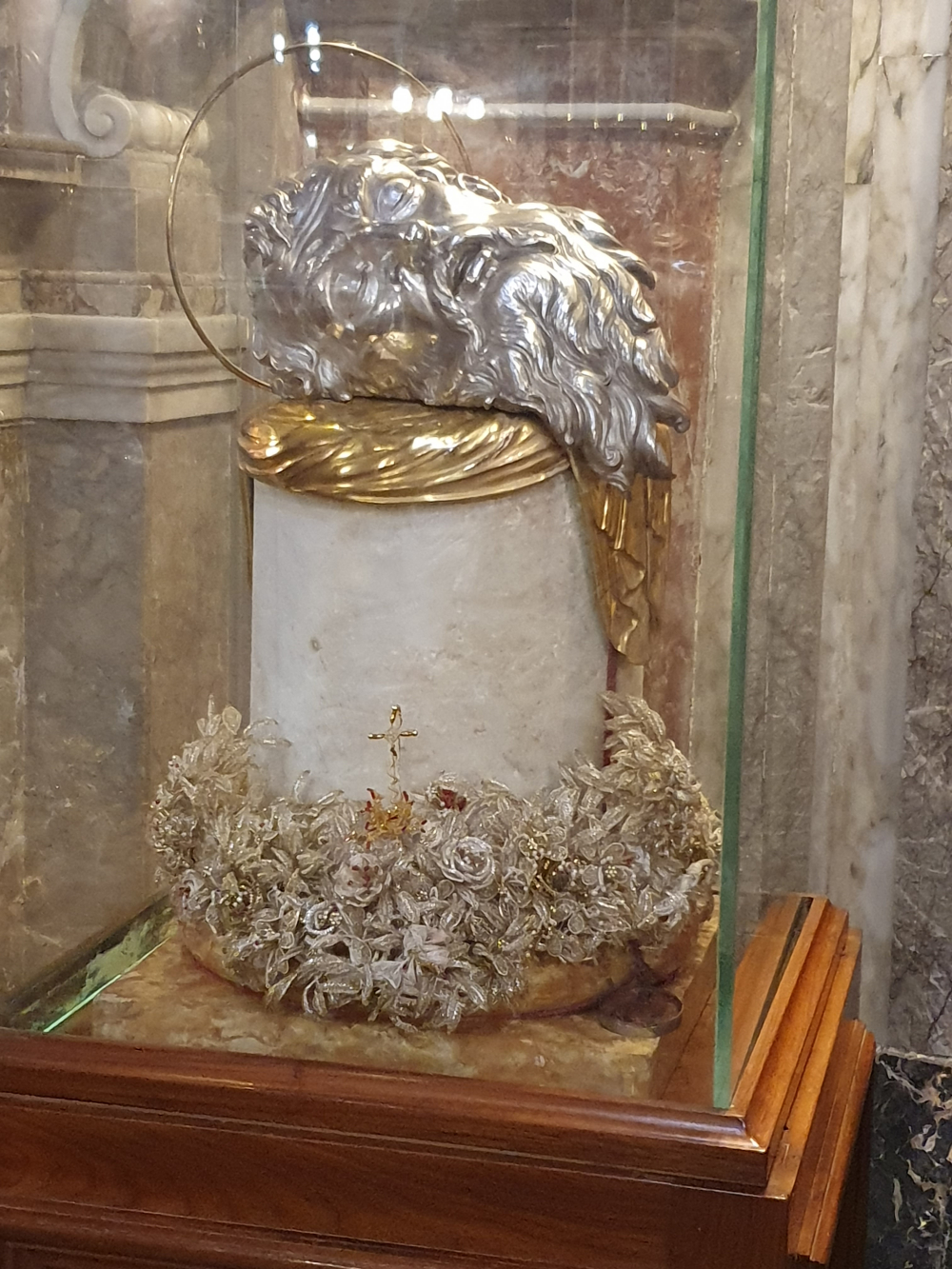 Once the worst of the heat had past we ducked out to find dinner. As it had cooled down and the church of St Paul of the Shipwreck had opened to the public after a service. They have a piece of the column that was used for the beheading of St Paul.