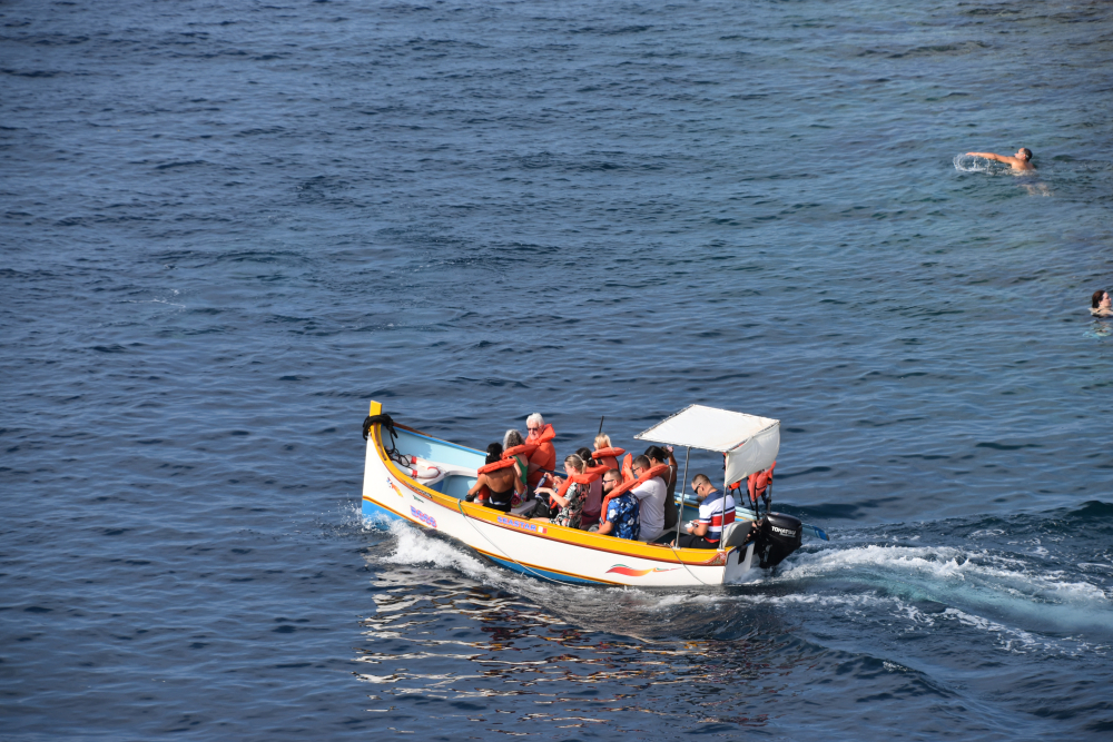Walking down the hill to the seashore we followed the signs to the Blue Grotto boats. Paying the ten euros each we were encouraged to hurry down to the landing stage and were the last two loaded onto the first boat of the morning.