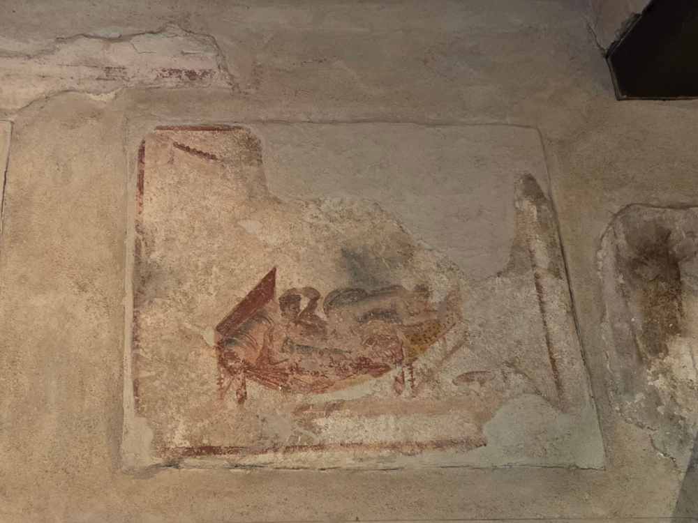 Getting off the bus in the carpark we had a short walk to the entrance. We then spent the next three hours touring the site. A fantastic tour, seeing the mosaics and painted wall art was interesting. Even more so the plaster moldings of the people who died all those years ago. As for the house of negotiable affection, the less said the better.