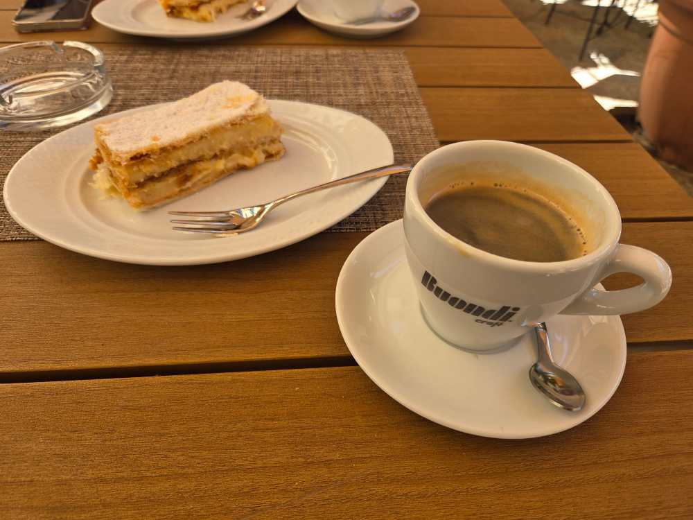 In town we wove through the narrow alleyways to the Cat Park by the North Gate. From there we zigzaged our way around town. After a couple of hours we got a coffee and Kotor Crempie and relaxed for a while.