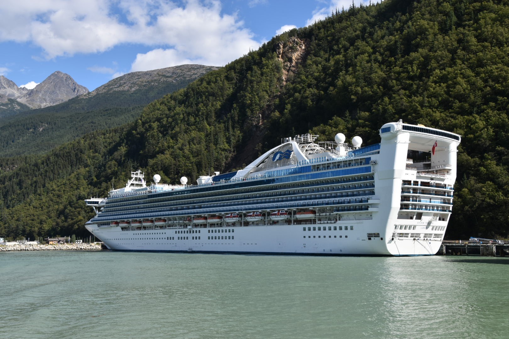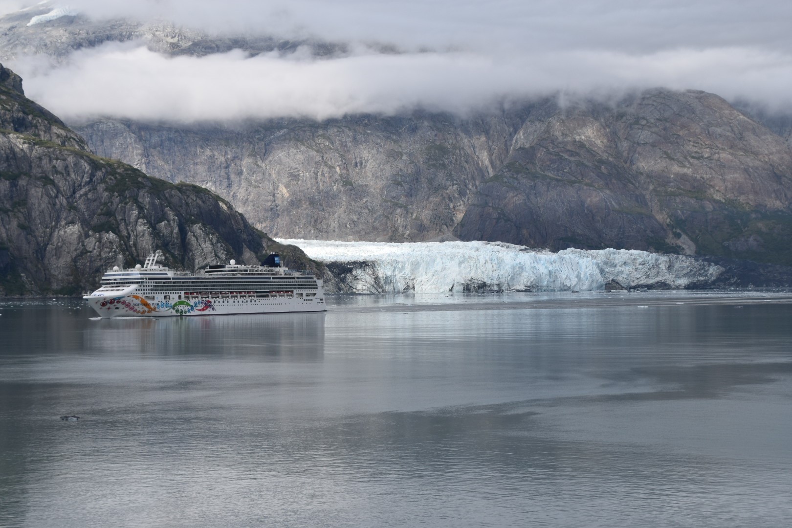 Margerie Glacier with a cruise liner for scale, Glacier Bay Alaska USA