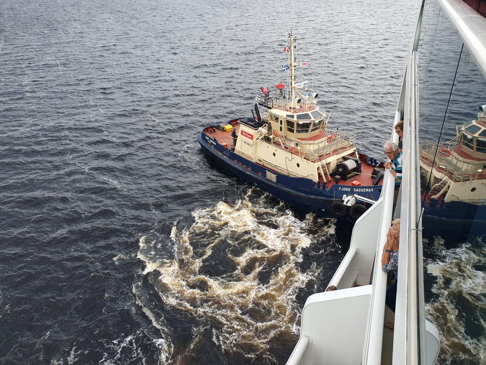 Breakfast and chill around the ship. Sun shining so spent time looking for whales. We entered the St Lawrence Seaway today, heading for Quebec City.