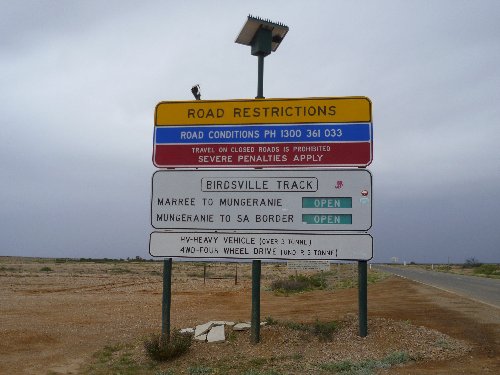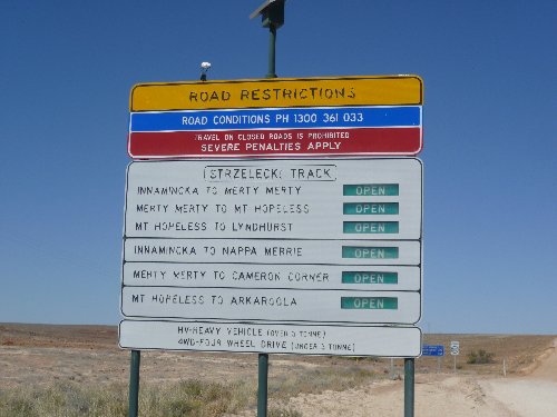 Maccas for lunch, out of luck. Sign at Mungerannie. 300Km up the Birdsville Track.