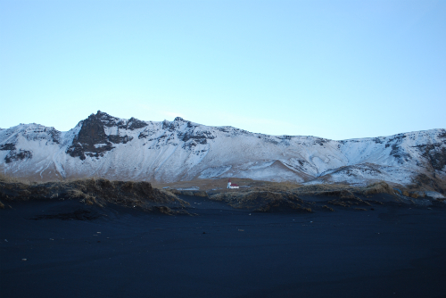 The church in Vik from the beach. The place to run to as the flows stopped at the door in the last volcanic eruption.