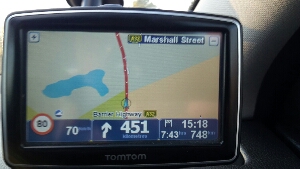 The driving instructions on our SatNav looked easy enough. 748 kilometers to go, keep right in 451 kilometres. It will take seven hours and fourty three minutes.