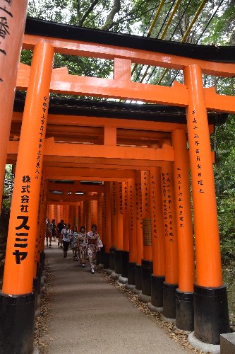 Locals in Kimonos on The Torii Path - Kyoto Japan