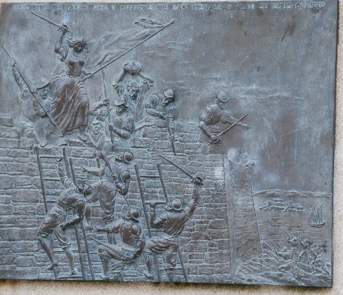 The frieze of Maria Peta repulsing the attack of Sir Frances Drake. La Coruna, Spain