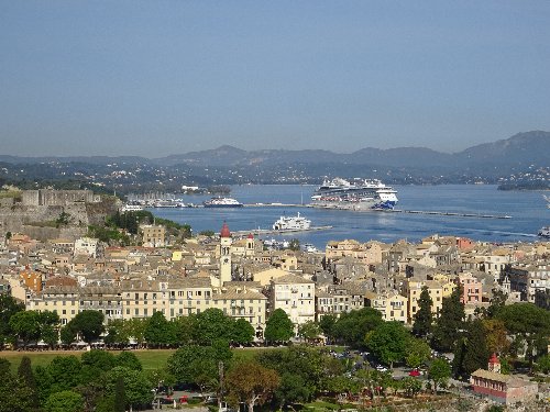 The Majestic Princess and the Old Fortress from the New Fortress. Corfu, Greece