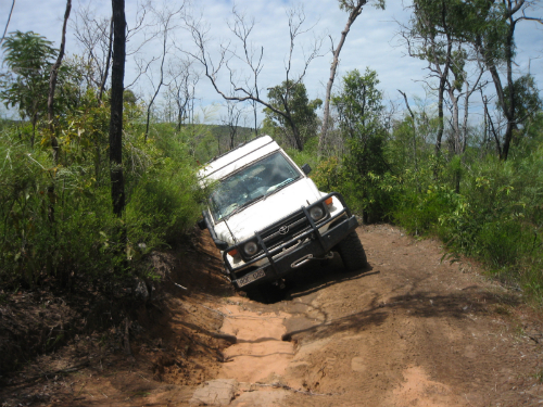 Up to the axles in mud on the Old telegraph Track. Time to use the winch